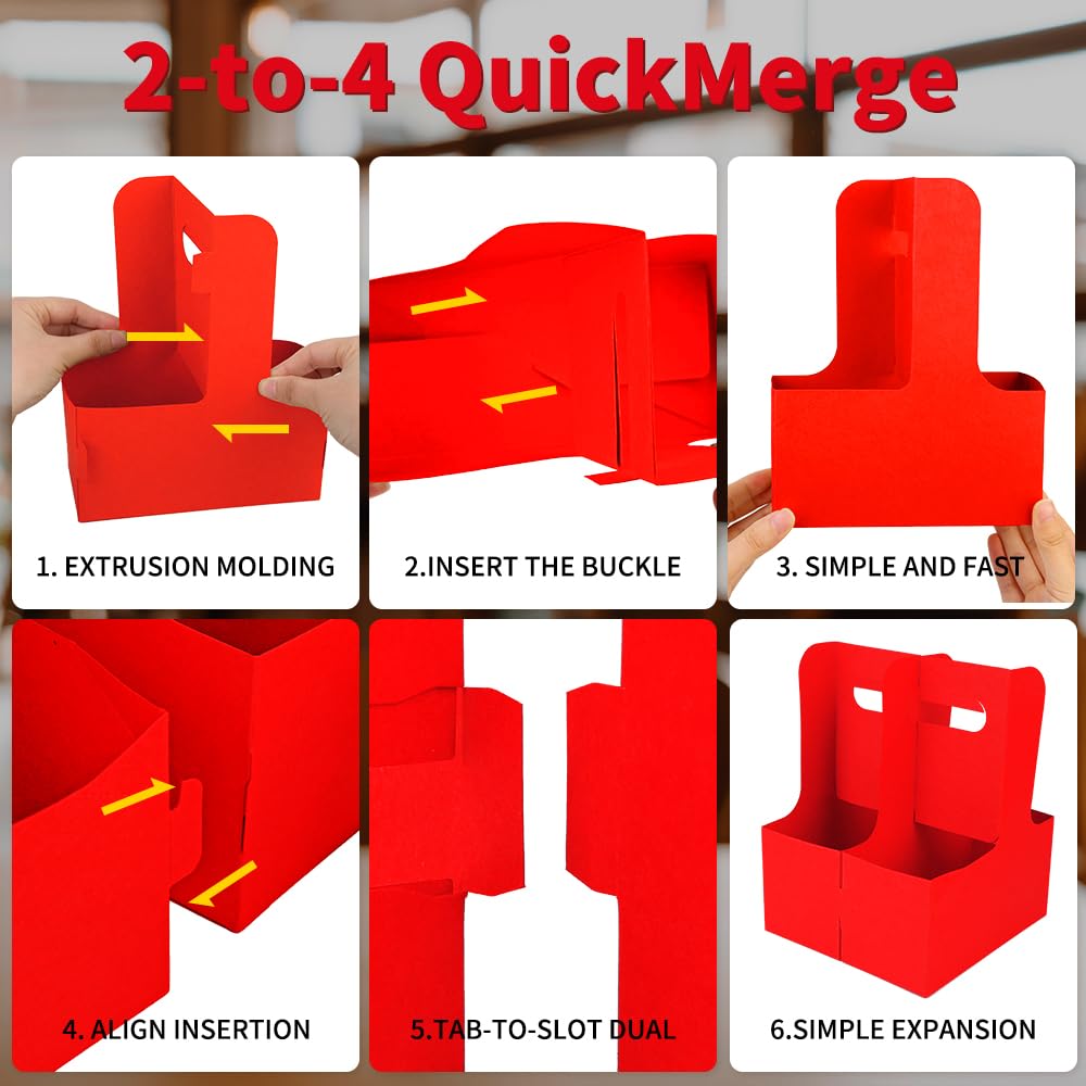 - 【Expandable 2-to-4 Cup Design】Interlock two carriers via buckles to create a 4-cup drink carrier for delivery