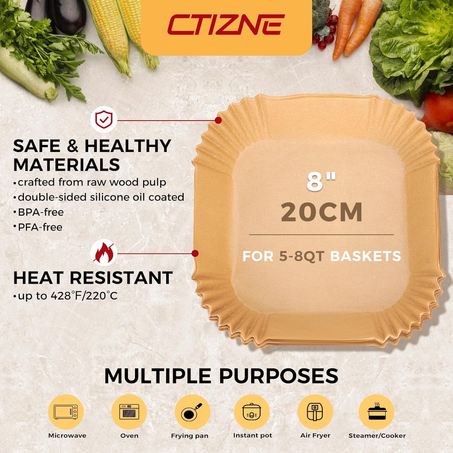 - Healthy Food Grade Material: Airfryer liners are made of 100% food-grade parchment and silicone oil coating. They are unbleached, BPA-free, PFAs-free, waterproof, oil-proof and non-stick. It can withstand temperatures up to 428°F.