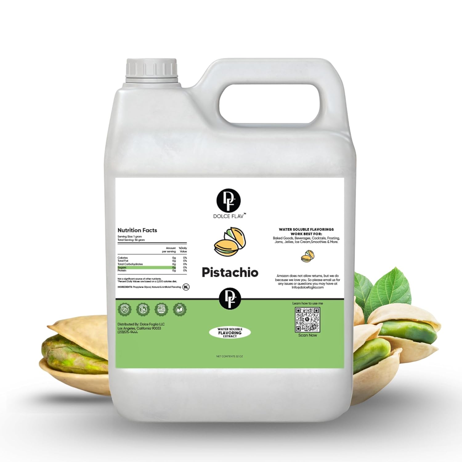 Dolce Flav Pistachio Flavoring – 32 oz. – Premium Flavoring for Ice Cream, Desserts, Boba, Beverages & Baked Goods | Ideal for Restaurants, Bakeries & Coffee Shops