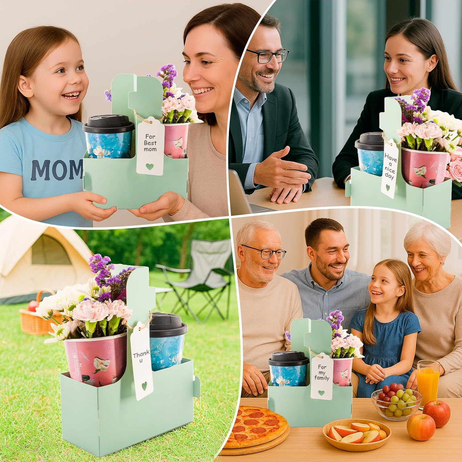 - Sufficient quantity: Our coffee holder package contains a total of 30 green cardboard two-cup drink holders, and also comes with love cards and rope. You can write their message or wishes on the card and place them on the paper cup holder with the rope. It is suitable for Teacher Appreciation Week and Mother's Day, Valentine's Day and other festivals