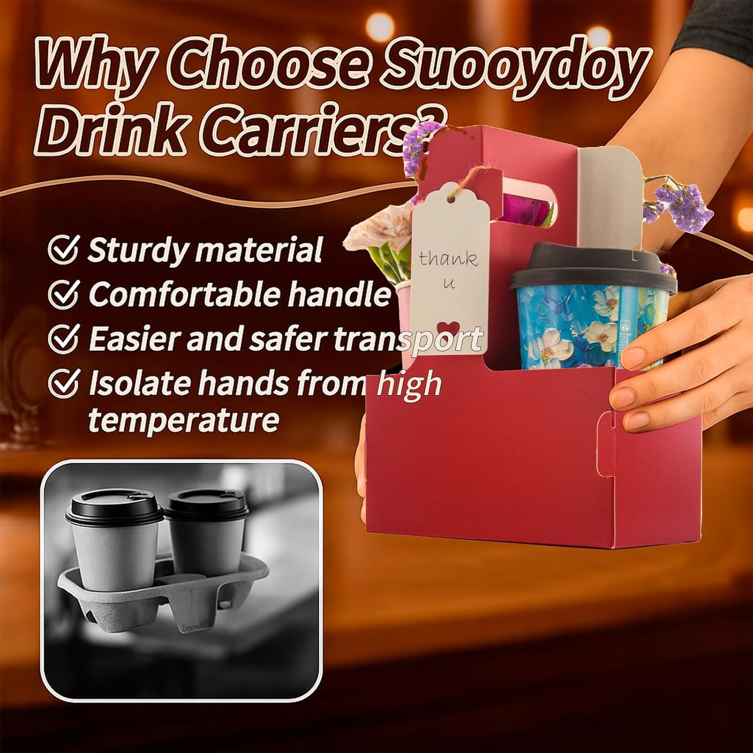 - High-quality material: Made of 350 Made of 100 grams of paper, the beverage holder is sturdy and durable, ensuring safety, reliability and durability. The waterproof function ensures that the contents will not accidentally spill. This beverage cup holder is ideal for takeout or take-out drinks, and can safely transport drinks and food