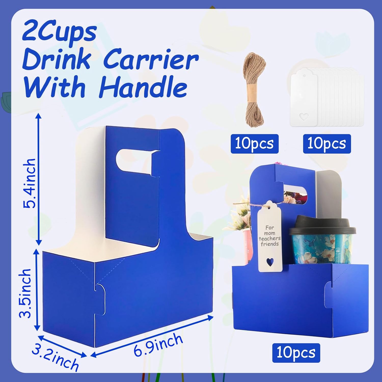 - Sufficient quantity: Our coffee holder package contains a total of 10 blue cardboard two-cup drink holders, and also comes with love cards and rope. You can write their message or wishes on the card and place them on the paper cup holder with the rope. It is suitable for Teacher Appreciation Week and Mother's Day, Valentine's Day and other festivals