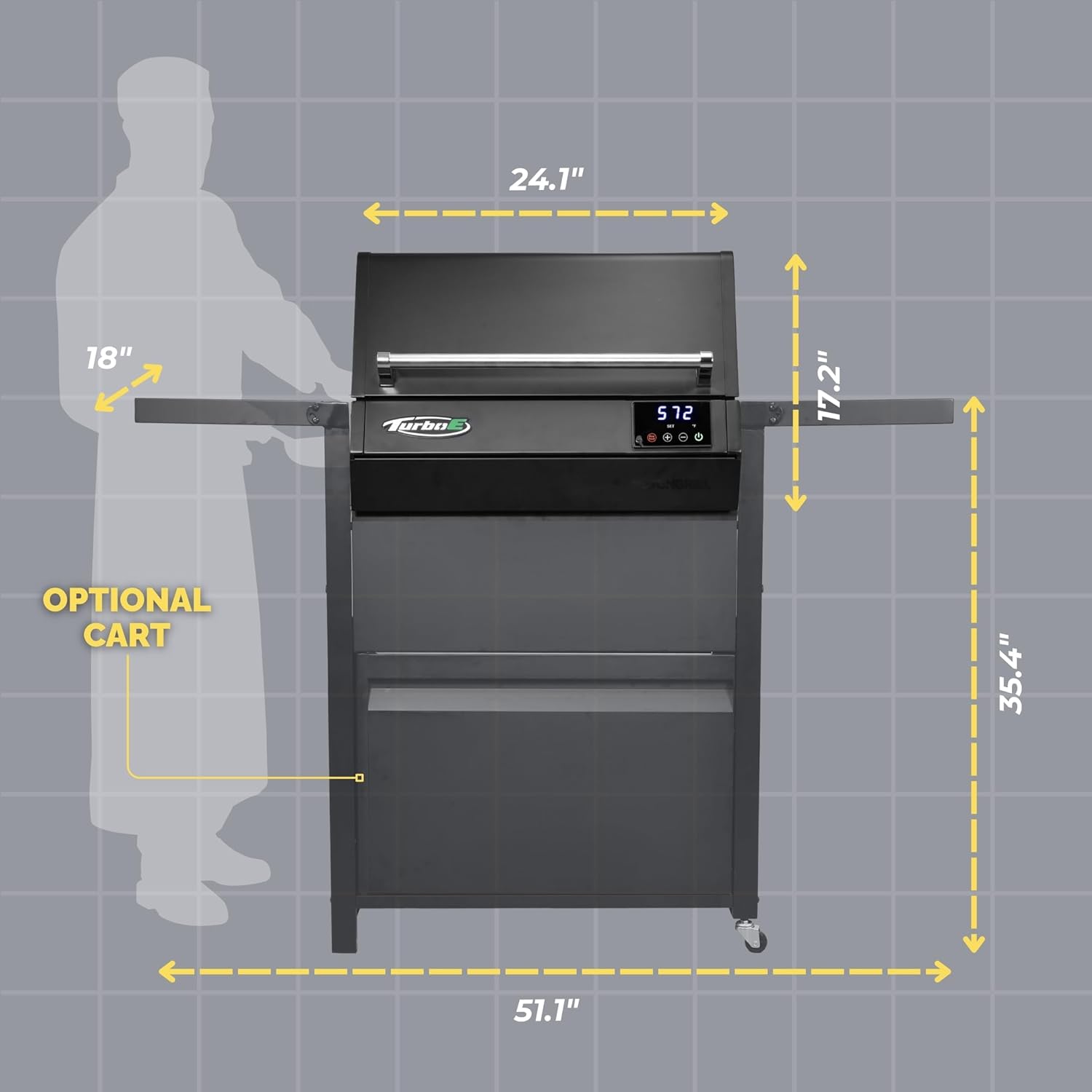 - EFFORTLESS DURABILITY: Built from high-quality materials like aluminum and porcelain, The Turbo E BBQ grill is designed for easy cleaning and durability. Experience seamless and enjoyable outdoor cooking