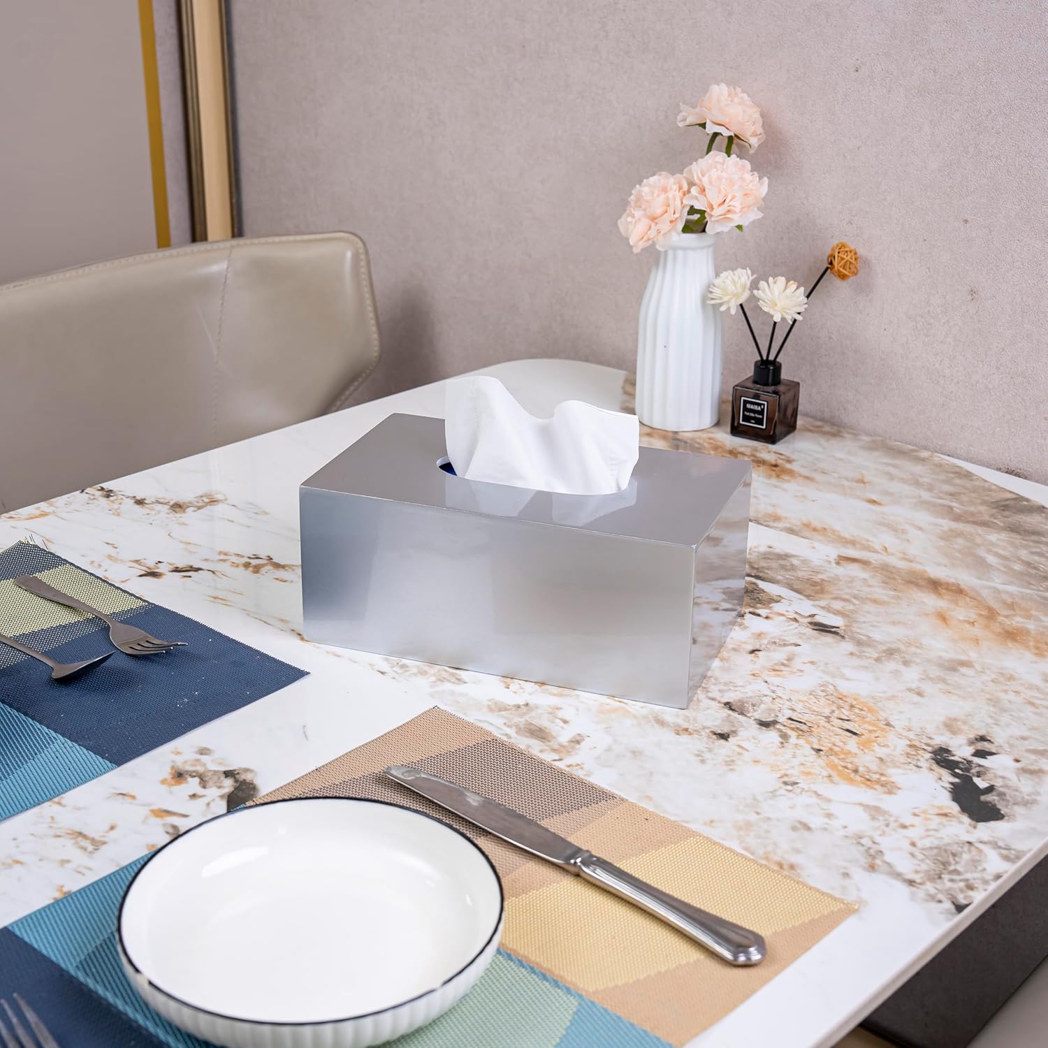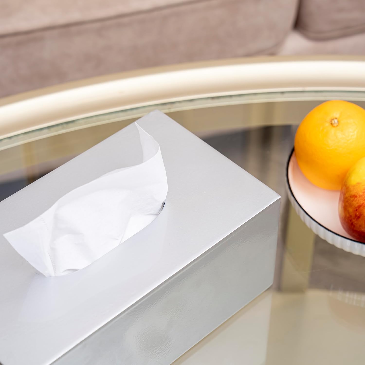 PEMAR Rectangular Lacquer Tissue Box, Handmade Rectangle Tissue Holder Decorative Napkin Dispenser Organizer Rustic Farmhouse Vintage Decor (Silver)