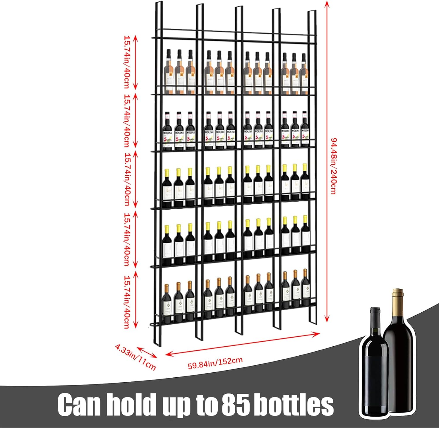 - High-quality material: The solid metal structure ensures stability and durability. The free standing wine rack has a large capacity. It can effectively organize wine bottles while cleverly expanding the storage space.