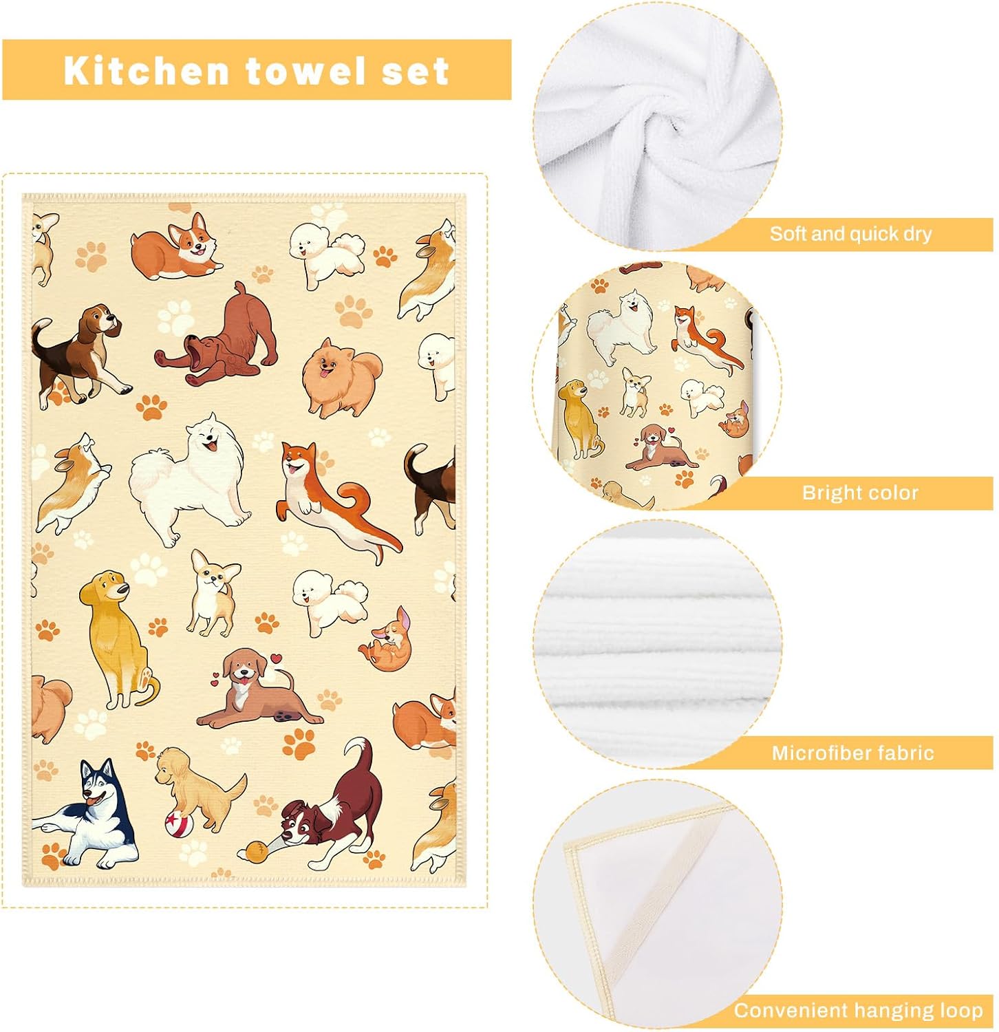 Cute Dogs Kitchen Towels and Oven Mitts Set 4Pcs, Soft Absorbent Dish Cloth Heat Resistant Oven Gloves for Cooking Baking Kitchen Decoration, Gifts for Her