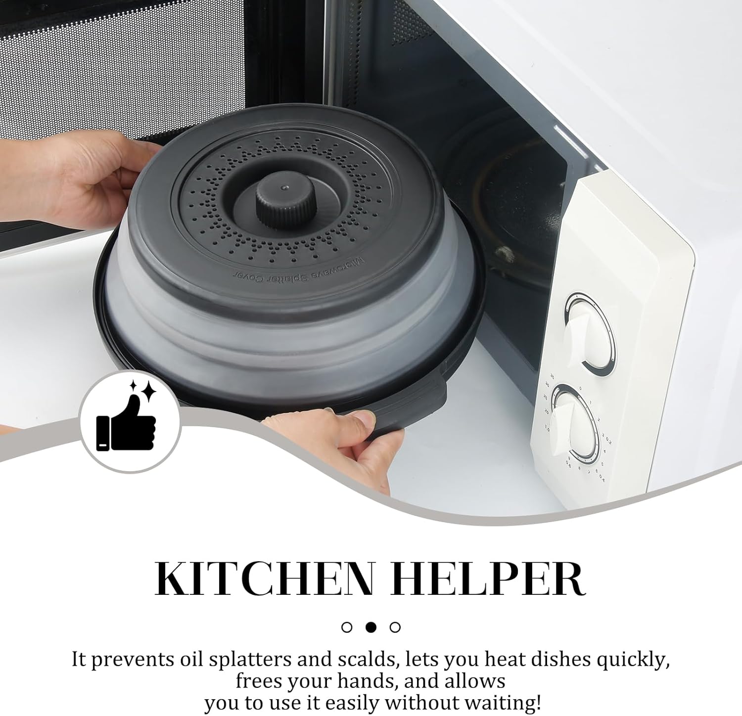- 【SAFETY DESIGN】:The splatter cover handle provides heat insulation to prevent scalds.With smooth,burr-free edges,its high-temperature-resistant material is suitable for microwave use,avoiding direct hand contact with heat sources for safe operation