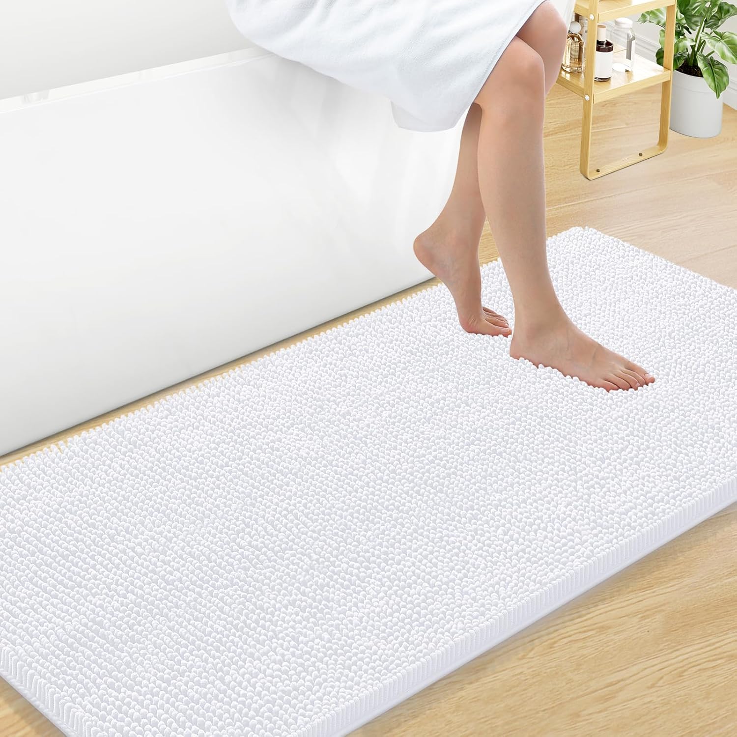 Arotive Bathroom Rugs 47x24, Extra Soft Absorbent Shaggy Chenille Bath Rugs, Machine Washable Rubber Backing Non-Slip Bath Mats for Bathroom Floor Tub and Shower, Home Decor Accessories, White