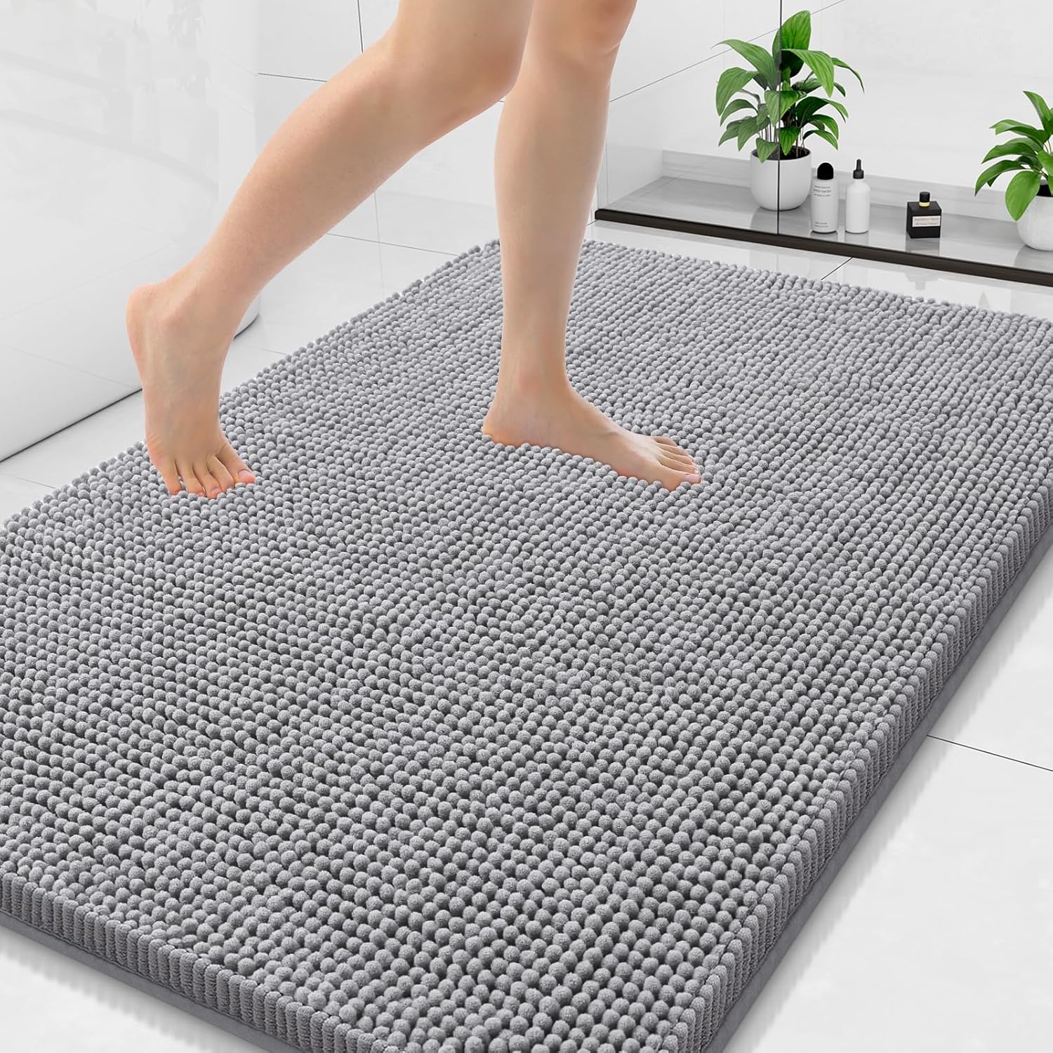 Arotive Bathroom Rugs 47x32, Extra Soft Absorbent Shaggy Chenille Bath Rugs, Machine Washable Rubber Backing Non-Slip Bath Mats for Bathroom Floor Tub and Shower, Home Decor Accessories, Grey