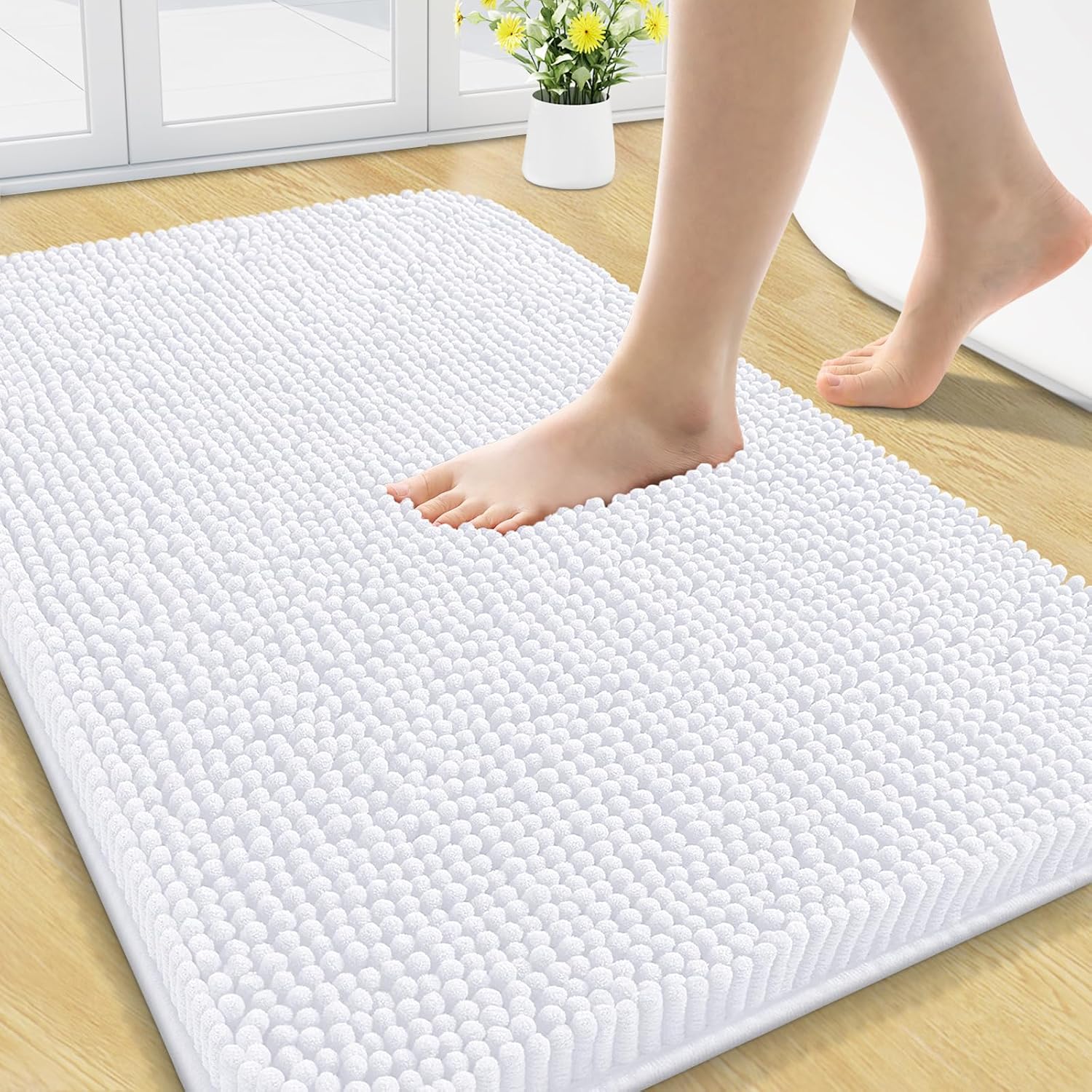 Arotive Bathroom Rugs 30x20, Extra Soft Absorbent Shaggy Chenille Bath Rugs, Machine Washable Rubber Backing Non-Slip Bath Mats for Bathroom Floor Tub and Shower, Home Decor Accessories, White