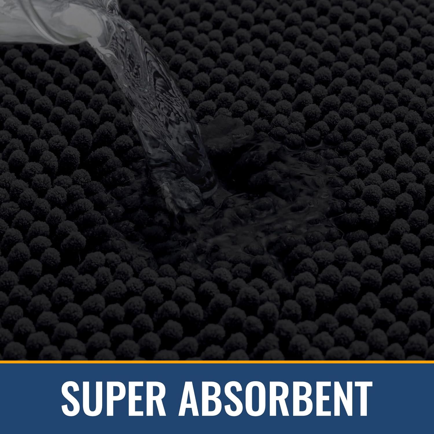 Arotive Bathroom Rugs 24x16, Extra Soft Absorbent Shaggy Chenille Bath Rugs, Machine Washable Rubber Backing Non-Slip Bath Mats for Bathroom Floor Tub and Shower, Home Decor Accessories, Black