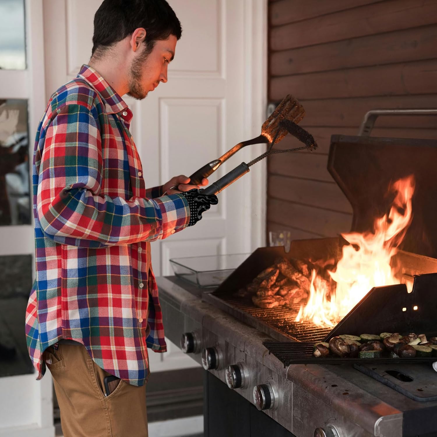 - 1472°F Heat Resistant: This grilling gloves provides high heat resistant up to 1472°F, providing perfect protection for your hands from high temperatures when your are grilling, baking, or cooking.
