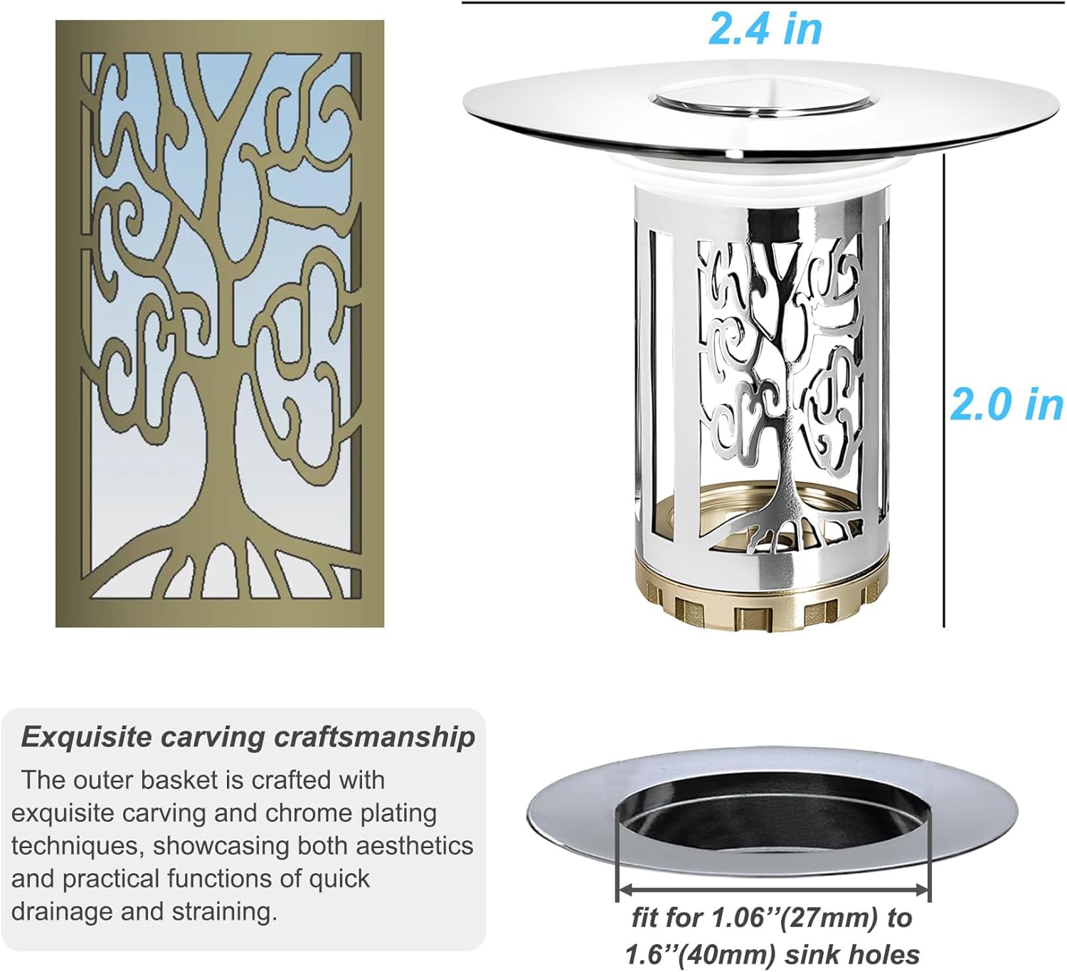 - Unique Design [USA Patented]: Sink stopper bathroom drain,the outer basket features an exquisitely carved pattern design, combining stunning beauty with practicaplity.
