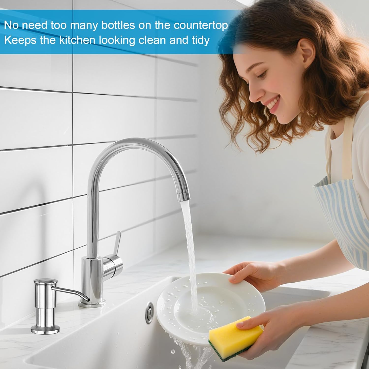 - Easy To Install: Built in soap dispenser for kitchen sink include the detailed installation instructions, no plumber required, DIY installation can be done in a few minutes. Enjoy your new in sink soap dispenser.