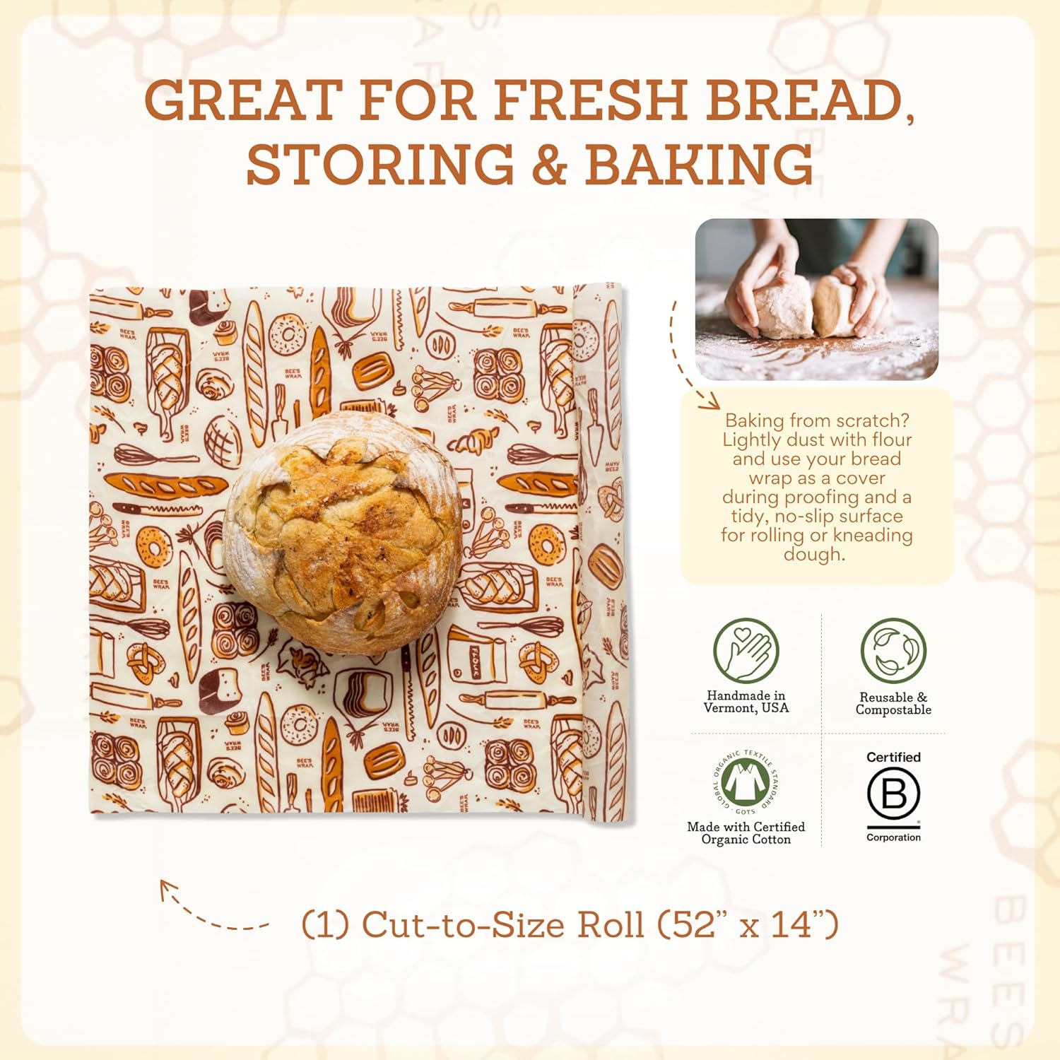Bee's Wrap Beeswax Wraps for Food - Bakery Lane Cut to Size 14x52" Wax Paper Roll - Made in USA Reusable Waxed Paper & Bowl Covers - Organic & Eco-Friendly Alternative to Aluminum Foil & Plastic Wrap